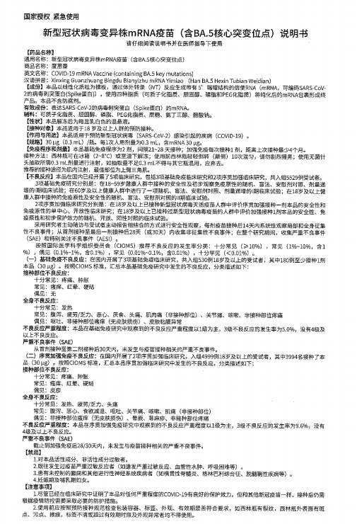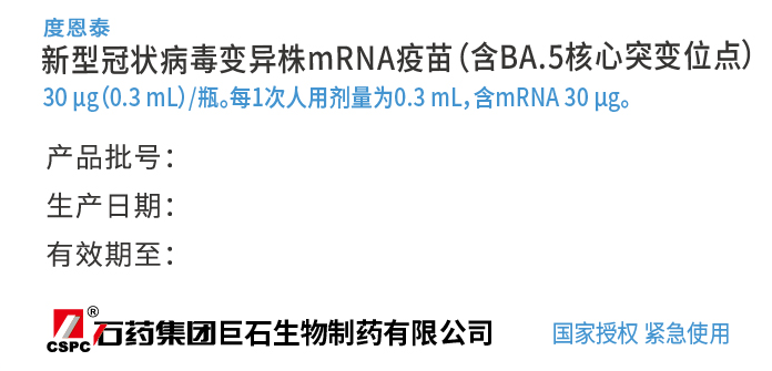 产品名称: 新型冠状病毒变异株mRNA疫苗(含BA.5核心突变位点)
