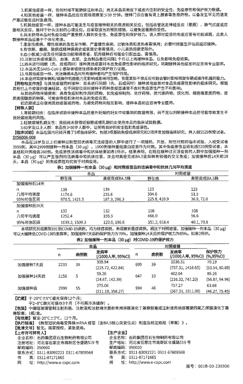 规格 :30 μg(0.3 mL)/瓶。每1次人用剂量为0.3 mL,含mRNA 30 μg。