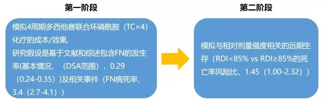 研究方法:选择45岁的Ⅲ期乳腺癌患者,采用马尔科夫模型,进行两阶段的分析。