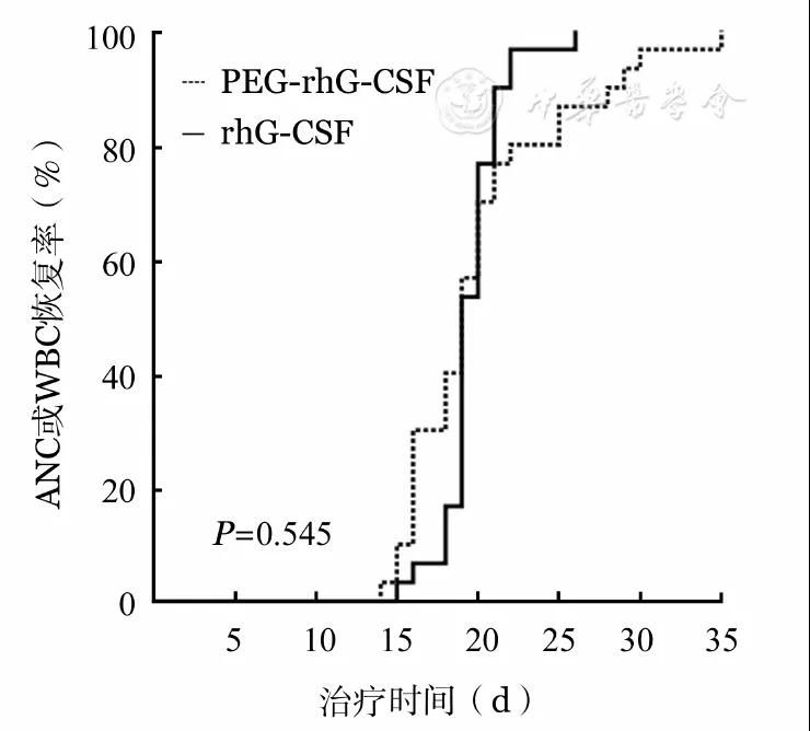 两组间ANC或WBC中位恢复时间差异无统计学意义