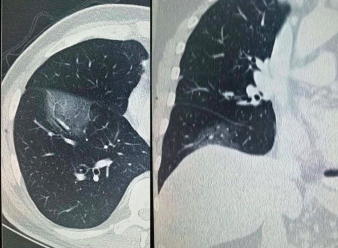 这是一位 57 岁男性。起病初期仅有畏寒,2 天后出现午后低、中热(37.5°C-37.7°C), 下呼吸道分泌物(痰)2019-CoV 阳性,服用抗格兰阳性抗生素和阿比多尔 3 天后症状缓解。[1]