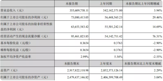 4月27日,石药新诺威发布2020年第一季度业绩报告,总收入约3.56亿元,同比增长3.94%;归属于上市公司股东的净利润7308.04万元,同比增长29.46%。