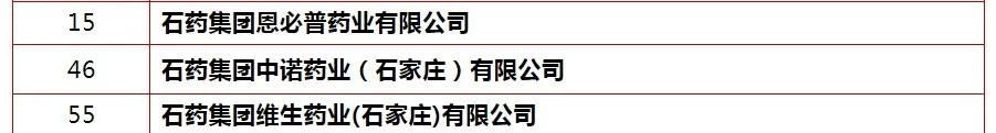 此次石药集团入选河北省领军百强企业的成员公司分别为石药集团欧意药业有限公司(11位)、石药集团恩必普药业有限公司(15位)、石药集团中诺药业(石家庄)有限公司(46位)、石药集团维生药业(石家庄)有限公司(55位)