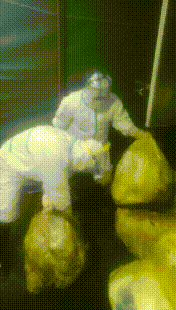 就这样,2.1吨的医废,从下午16点一直到晚上22点,不间断的投料,从未停歇。为了节省防护服,他们选择投料期间不吃饭、不喝水、不上厕所。焚烧炉发动起来以后,温度可以高达1100摄氏度,车间的温度也会随之飙升到50度左右,再加上空间狭小,有时候呼吸都会比较困难,防护服内水汽会很快聚集而导致视线模糊。完成投料后,员工们都已筋疲力尽、全身湿透... ...