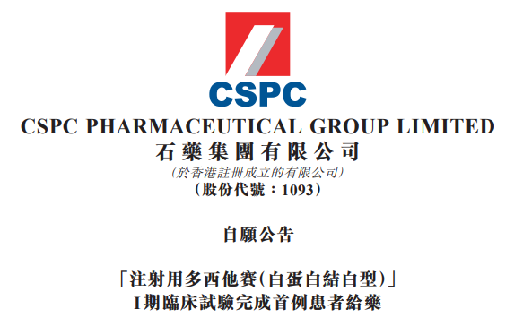 3月30日,石药集团(1093.HK)公告,集团附属公司石药集团中奇制药技术(石家庄)有限公司开发的注射用多西他赛(白蛋白结合型)已为参与美国I期临床试验的首例患者完成给药