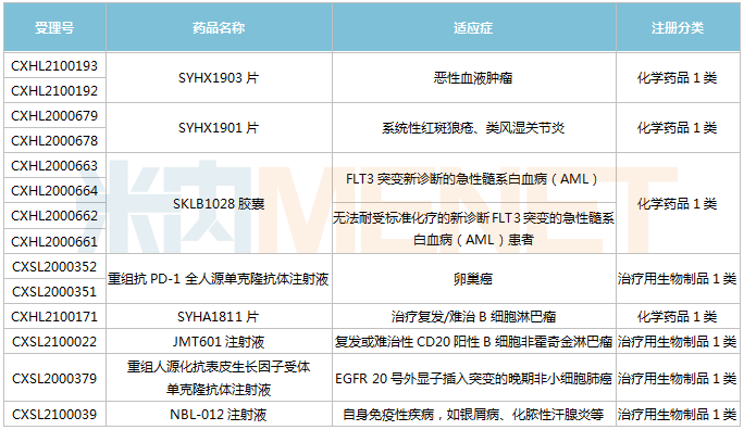 2021年至今石药集团获批国内临床的1类新药