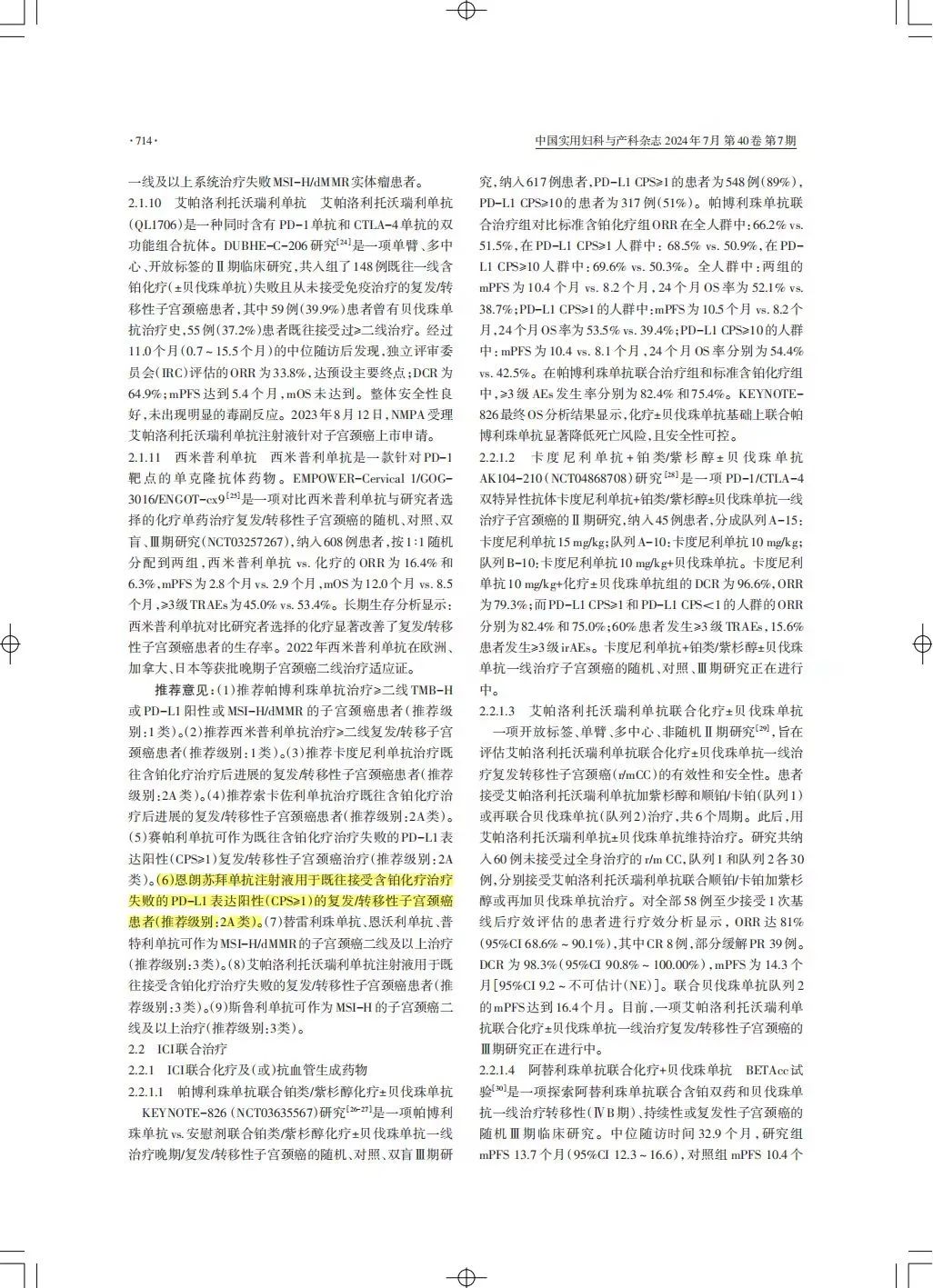 [1] 中国实用妇科与产科杂志2024年7月第40卷第7期