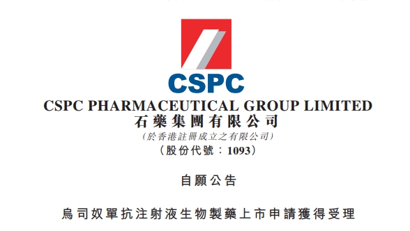 石药集团乌司奴单抗注射液生物制药上市申请获得受理