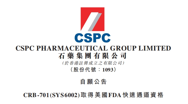 石药集团对外授权药物获得美国FDA快速通道资格