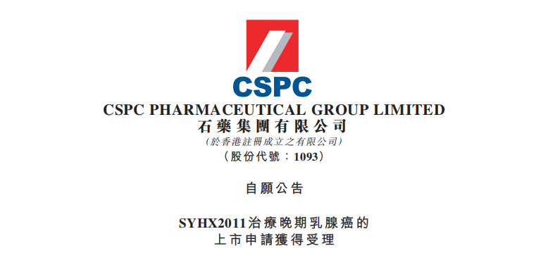 石药集团SYHX2011治疗晚期乳腺癌的上市申请获得受理