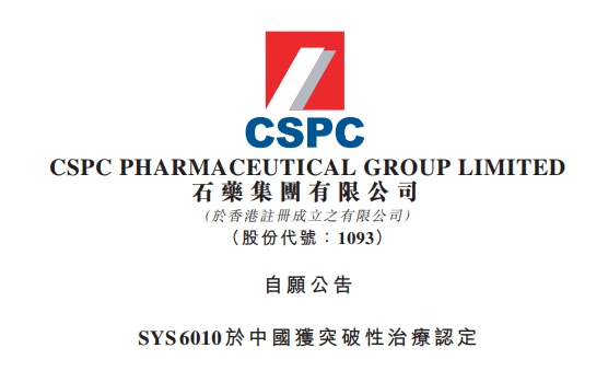石药集团SYS6010获突破性治疗认定