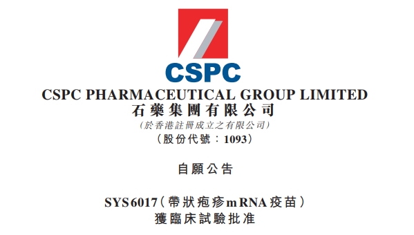 石药集团SYS6017(带状疱疹mRNA疫苗)获临床试验批准