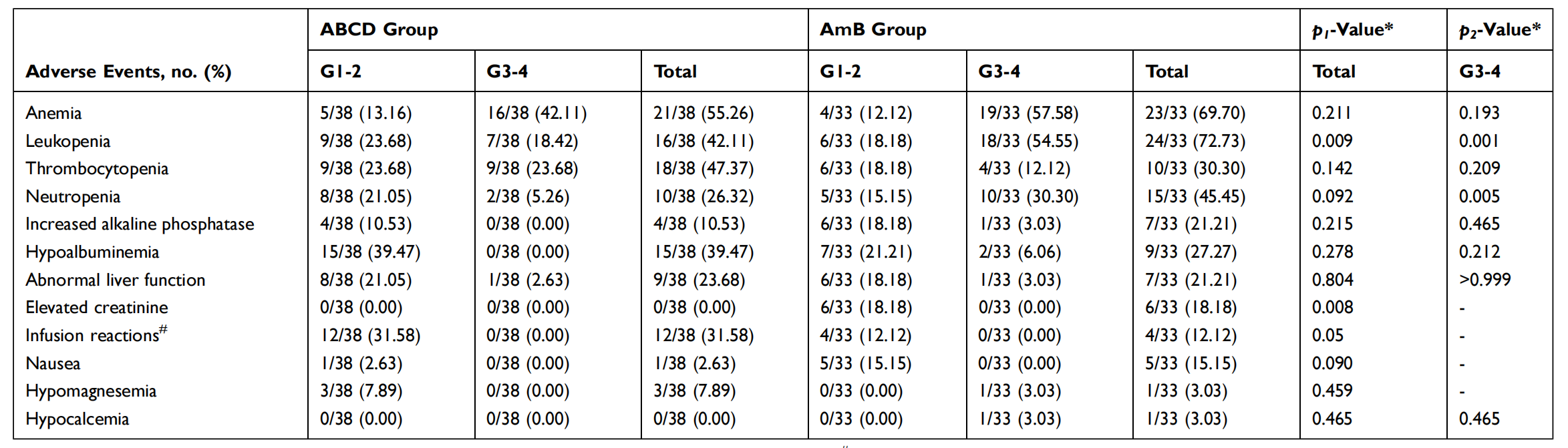 近期,《Infection and Drug Resistance》(2024,IF2.9,DOI: 10.2147/IDR.S481856)发表了一项由重庆市公共卫生医疗救治中心感染科陈耀凯教授牵头开展的,既往接受过ABCD或AmB-D治疗的HIV阳性马尔尼菲蓝状菌病回顾性研究的结果,旨在比较ABCD和AmB-D在HIV阳性马尔尼菲蓝状菌病患者的疗效和安全性。一项回顾性研究,研究对象为2018年1月至2022年12月期间接受过ABCD或AmB-D治疗的HIV阳性马尔尼菲蓝状菌病的患者。通过收集其相关病例资料,比较了两种抗真菌药物的疗效和安全性。共纳入38例接受ABCD治疗的患者、33例接受AmB-D治疗的患者。ABCD组治疗一周后的真菌阴转率为86.84%(33/38),AmB-D组为90.09%(30/33),两组在治疗后两周后真菌转阴率均达到100.00%。与AmB-D组相比,ABCD组在两周时的症状缓解率更高(94.74% vs 75.76%; P=0.003)。此外,AmB-D组血清肌酐水平较基线显著升高,而ABCD组无显著升高。并且,与AmB-D组相比,ABCD组因药物不耐受而停止抗真菌治疗的患者明显减少,白细胞降低和肌酐水平升高的发生率更低。ABCD的临床疗效与AmB-D相当,具有更高的症状缓解率,更低的肾毒性和更低的骨髓抑制,提示ABCD可能是临床治疗马尔尼菲蓝状菌病的合适的替代选择。