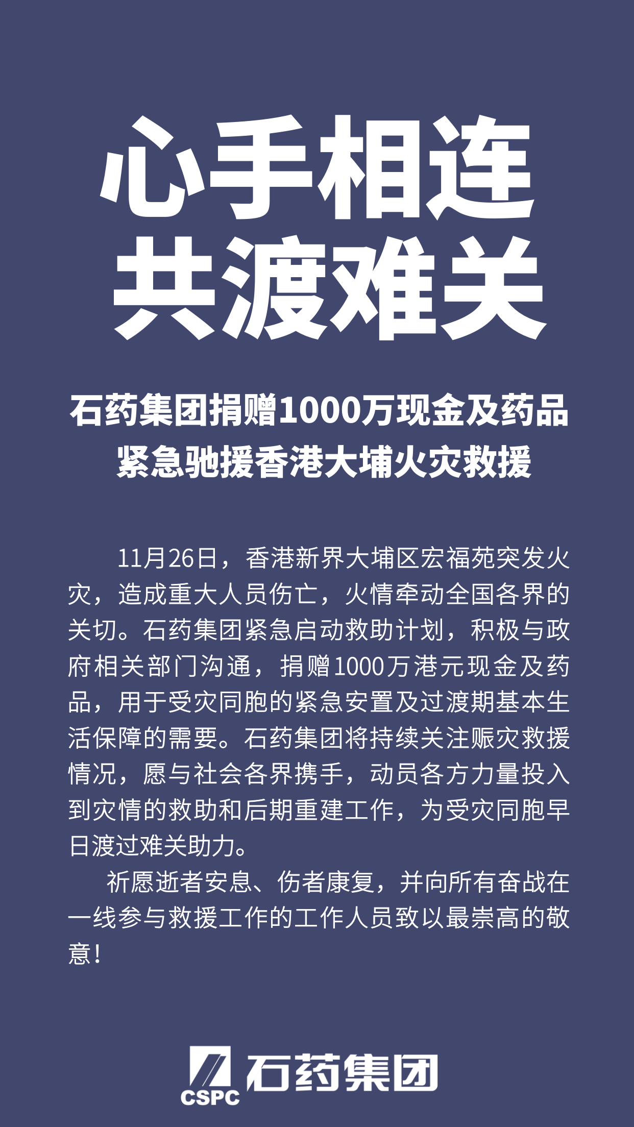 石药集团捐赠1000万现金及药品 紧急驰援香港大埔火灾救援