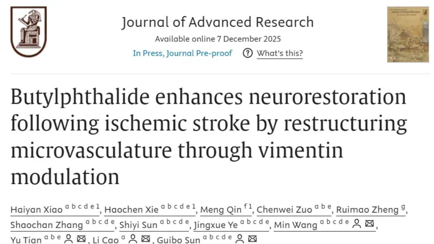 参考文献:Xiao, Haiyan et al. “Butylphthalide enhances neurorestoration following ischemic stroke by restructuring microvasculature through vimentin modulation.” Journal of advanced research, S2090-1232(25)00964-6. 7 Dec. 2025, doi:10.1016/j.jare.2025.11.068
