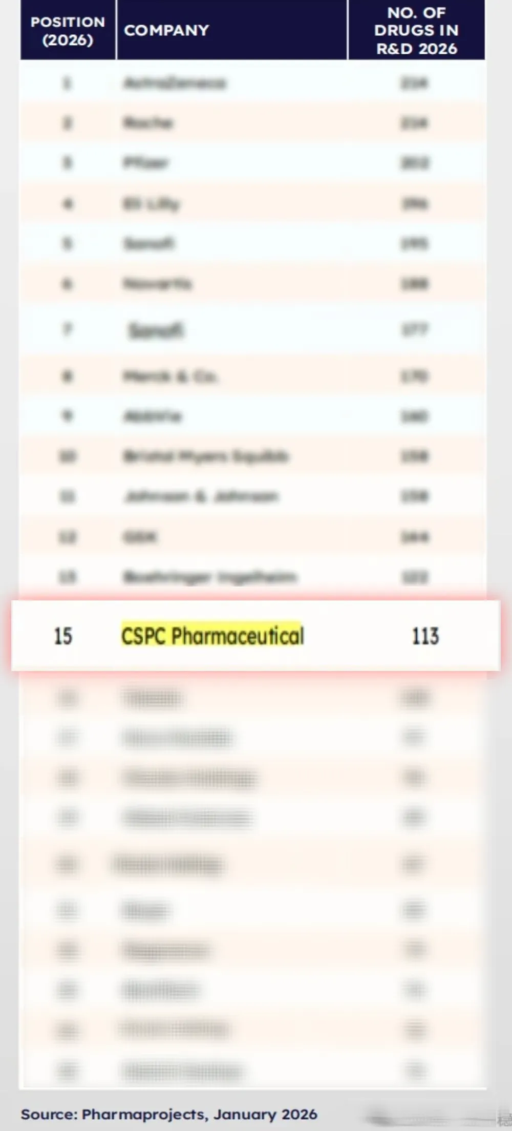 全球排名再度跃升!石药集团位列Citeline 2026全球管线规模第15位