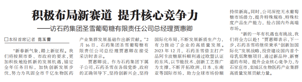 积极布局新赛道 提升核心竞争力 ——访石药集团圣雪葡萄糖有限责任公司总经理贾惠卿